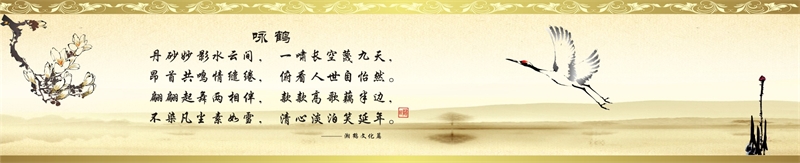 鶴!不僅僅是美麗、高貴、優(yōu)雅、富有靈氣的稀世之鳥、湘鶴人更感受到她那飛翔的魅力,領略她那更善于搏擊的斗志、勇于弄潮的氣派,當她展翅高飛直上藍天時,真有一種鳥瞰大地、一覽眾山小的氣魄和駕御未來的豪邁。她是一只與成功同行的文化之鶴!
