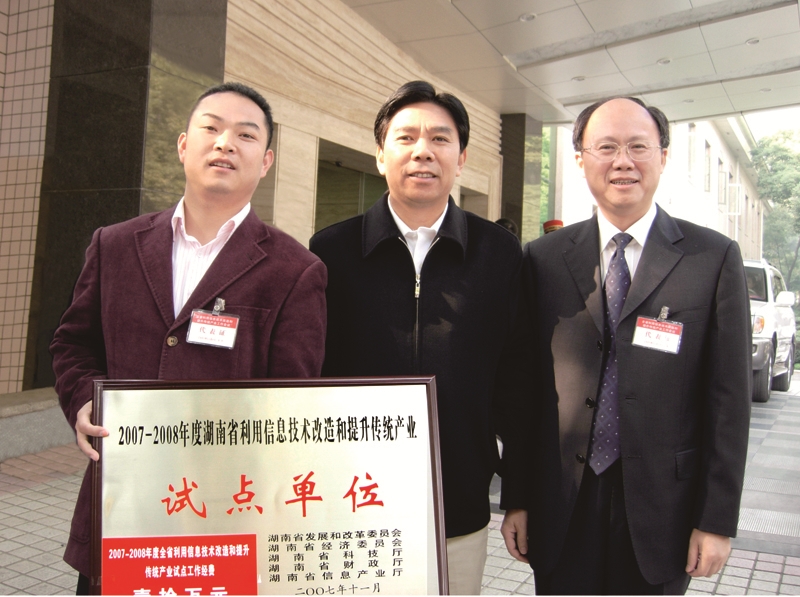中國國家發(fā)改委原副主任徐憲平及省信息廳賀廳長與湘鶴集團(tuán)董事長王茂卿合影留念。