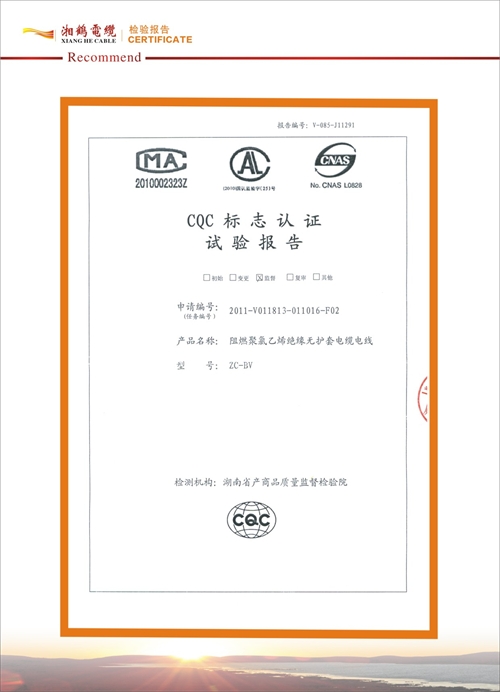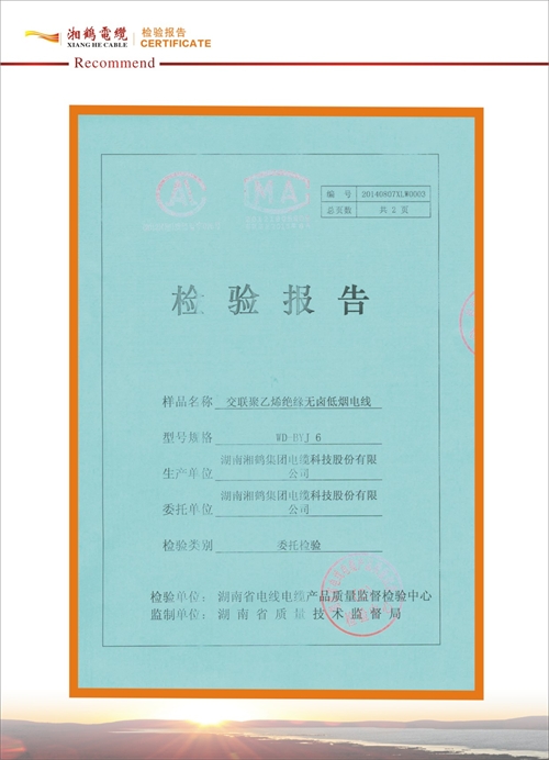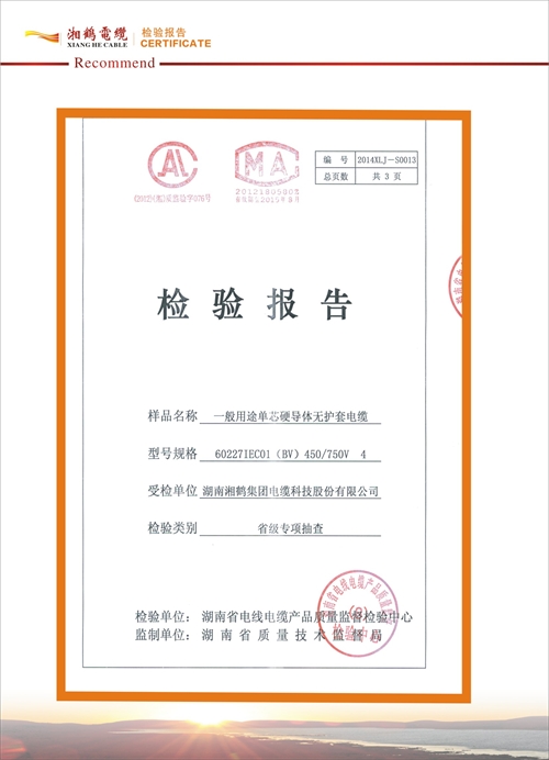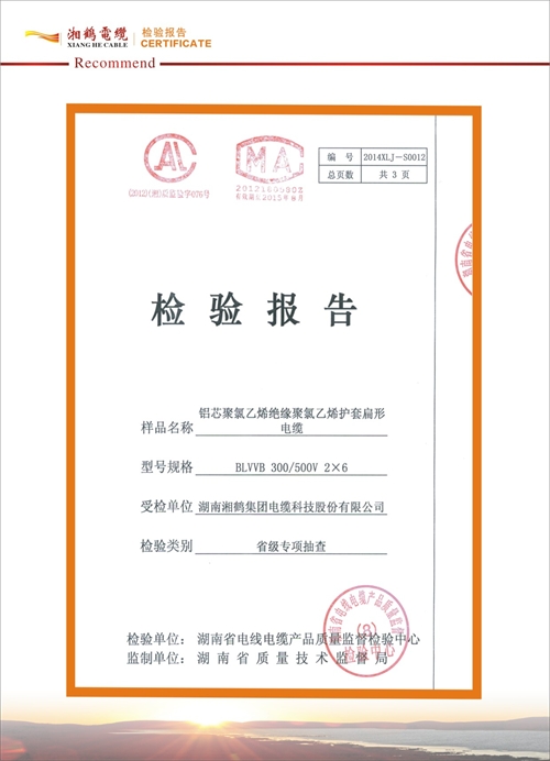 湘鶴電纜檢驗報告