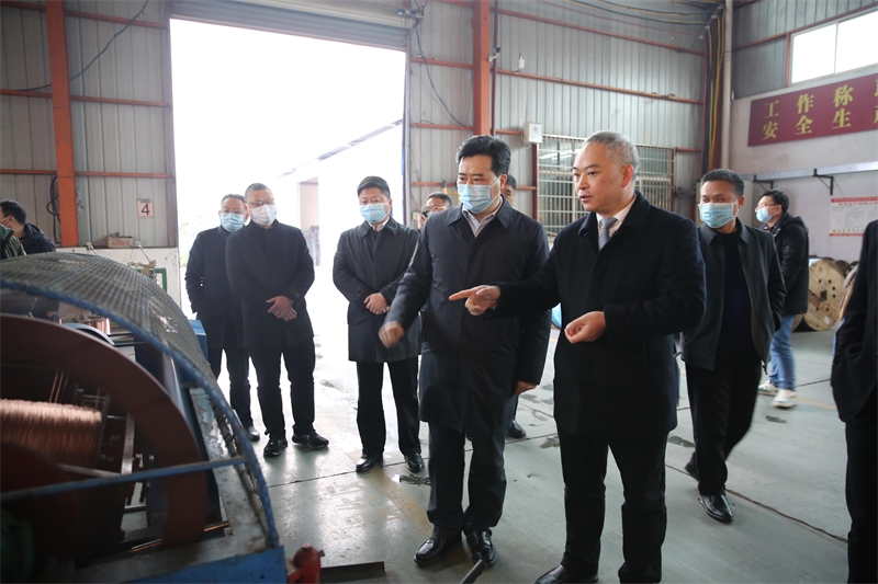 2022年2月12日下午,懷化市委副書記、懷化市市長黎春秋等市領(lǐng)導一行在高新區(qū)管委會有關(guān)領(lǐng)導陪同下蒞臨湖南湘鶴集團電纜科技股份有限公司調(diào)研企業(yè)運營、疫情防控等工作。湖南湘鶴集團電纜科技股份有限公司董事長王茂卿、總經(jīng)理王茂楓等公司領(lǐng)導全程陪同并向領(lǐng)導匯報年初復工復產(chǎn)、生產(chǎn)經(jīng)營等相關(guān)情況。黎春秋一行深入企業(yè)一線,查看生產(chǎn)車間、產(chǎn)品展示廳、科研檢測中心,詳細了解企業(yè)生產(chǎn)經(jīng)營、產(chǎn)品研發(fā)、發(fā)展規(guī)劃等情況,勉勵企業(yè)繼續(xù)把科技創(chuàng)新擺在核心位置,加大創(chuàng)新研發(fā)力度,做強做優(yōu)科研團隊,建好用好研發(fā)平臺,努力擁有更多自主知識產(chǎn)權(quán)。