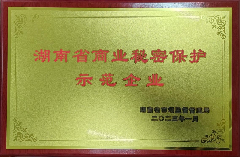 熱烈祝賀公司獲評“湖南省商業(yè)秘密保護(hù)示范企業(yè)”