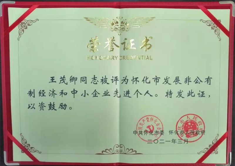 此次表彰會上我公司獲得了“懷化市發(fā)展非公有制經(jīng)濟(jì)和中小企業(yè)先進(jìn)單位”榮譽(yù)稱號;集團(tuán)公司董事長王茂卿獲評“懷化市發(fā)展非公有制經(jīng)濟(jì)和中小企業(yè)先進(jìn)個人”。獲此殊榮是市委市政府對我公司近年來企業(yè)發(fā)展所取得的優(yōu)異給予的肯定。