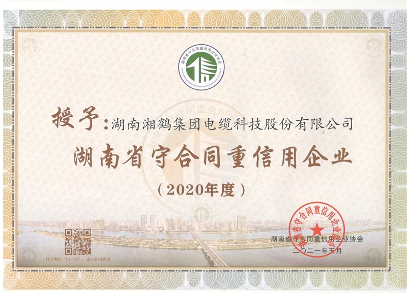 熱烈祝賀湖南湘鶴集團(tuán)榮獲2020年度“湖南省守合同重信用企業(yè)”